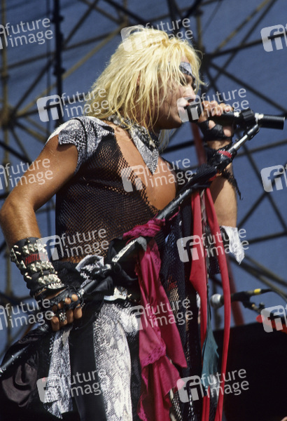 Vince Neil von Mötley Crüe auf dem Monsters of Rock Festival 1984 im Donington Park. Donington, 18.08.1984
