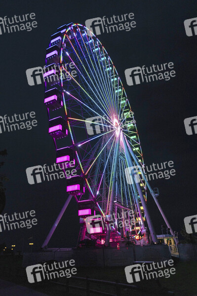La Noira Gigante, Nachtaufnahe, Beleuchtung, Illumination, Fahrgeschäft, Attraktion, Aussicht, Elektroantrieb, transportable Riesenräder, stationäre Riesenräder, Vergnügungsattraktion, Gondel, Gondeln, Höhe, Höhenangst, Touristenattraktion, Symbolbild, Themembild