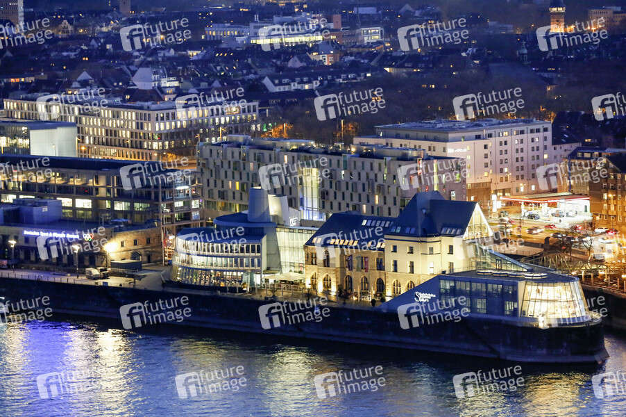 Architektur, Fluss, Rhein, Geschichte, Kultur, eise, Sehenswürdigkeit, Sonne, Stadt, Tourismus, Urlaub, Abend, Abendstimmung, Blaue Stunde, Symbolbild, Symbolfoto