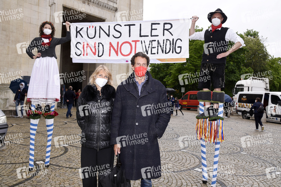 Prof. Dr. Julian Nida-Rümelin mit Gattin Nathalie Weidenfeld bei der Demonstration 'Aufstehen für Kultur 2' auf dem Königsplatz. München, 13.05.2021