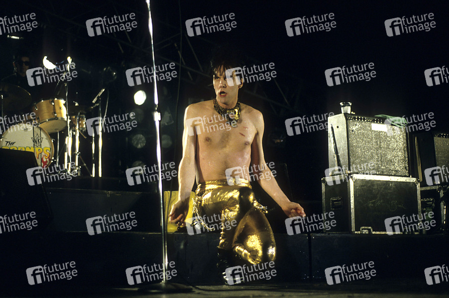 Lux Interior von The Cramps live im Hammersmith Odeon. London, 16.03.1986