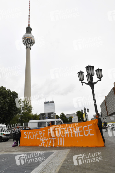 Demo, Demonstration, Demonstranten, Politik, Protest, Aktion, Evakuierung, Räumung, Flüchtlingslager, Menschenrechte, Demo, Rotes Rathaus, Initiative Seebrücke, Flüchtlingspolitik, Asyldebatte, Asylpolitik, Einwanderung, Zuwanderung, Asylrecht, Asylgesetz