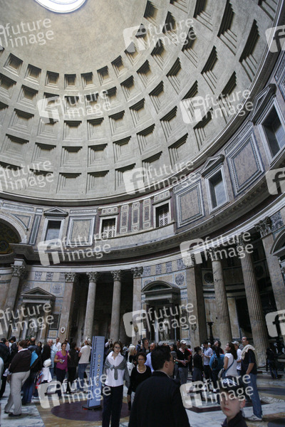 ein allen (Haupt-)Göttern geweihtes Heiligtum, Kaiser Hadrian ließ es auf dem Marsfeld in Rom zwischen 118 und 125 n. Chr. erbauen, war für länger als 1700 Jahre die größte Kuppel der Welt gemessen am Innendurchmesser, seit dem 13. Mai 609 eine römisch-katholische Kirche, das Hauptgebäude des Pantheons ist ein überwölbter Rundbau von ca. 43 m Innendurchmesser und -höhe, der Schlussstein hat eine neun Meter große Öffnung (Opaion) - die als einzige Lichtquelle dient