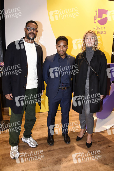 Derek Sealy, David Burnell IV und Alla Sergeeva bei der Eröffnung des 35. Fantasy Filmfest 2021 mit der Premiere des Kinofilms 'Gunpowder Milkshake' im Rio Filmpalast. München, 31.10.2021