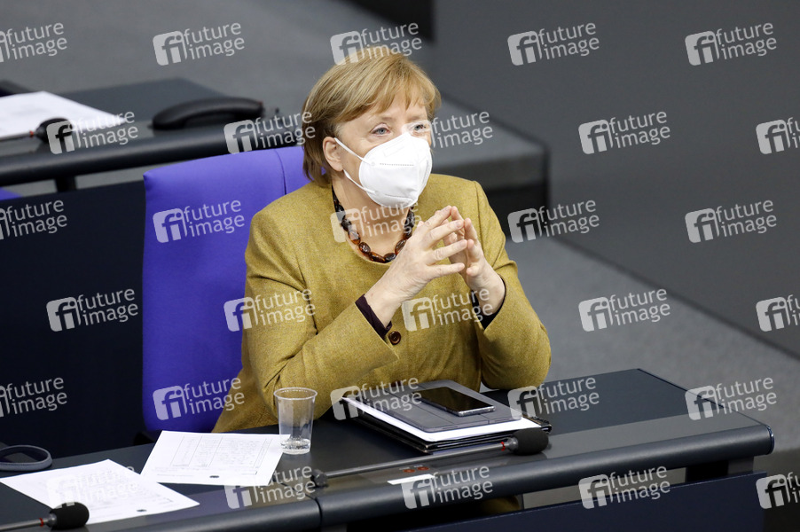Angela Merkel in der 209. Sitzung des Deutschen Bundestages im Reichstagsgebäude. Berlin, 11.02.2021