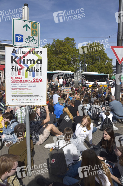 Demonstranten bei der 'Fridays for Future' Demonstration im Rahmen des weltweiten Klimastreiks. Darmstadt, 20.09.2019