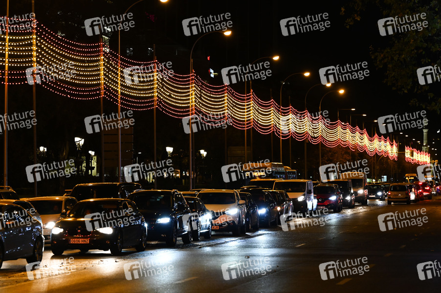 Einschalten der traditionellen Weihnachtsbeleuchtung im Stadtzentrum. Madrid 26.11.2020