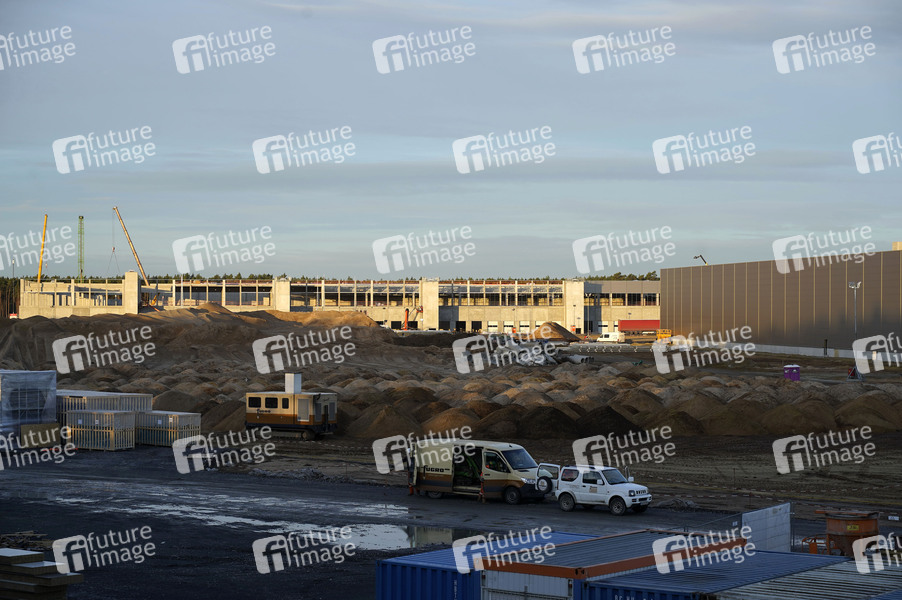 Elektroauto, Elektrofahrzeuge, PKW, Auto, Model Y, Model 3, Großfabrik, Automobilhersteller, Autobauer, Elektromobilität, umweltfreundlich, vorläufige Genehmigung, Batteriefabrik, Großprojekt, Investition, Baugenehmigung, Vorab-Genehmigung, E-Auto-Fabrik, Umwelt, Klimaschutz, Baustelle, Bauen, Baubranche, Bau-Branche, Bauarbeiten, Großbaustelle, Kran, Kräne, Baustelle, Wirtschaft, Autoproduktion