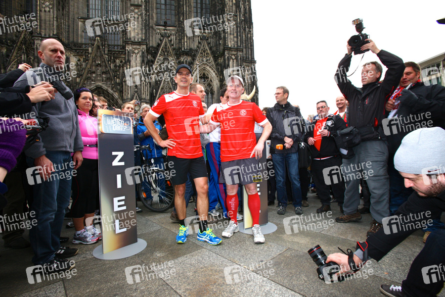 'Wetten dass...?''-Moderator Markus Lanz löst seine verlorene Wette mit einem Lauf von Düsseldorf nach Köln ein