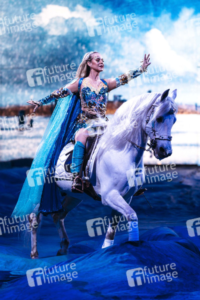 Pferdeshow 'Cavalluna - Grand Moments' mit Reitkunst, Aktobatik und Tanz in der Messehalle. Erfurt, 26.04.2025