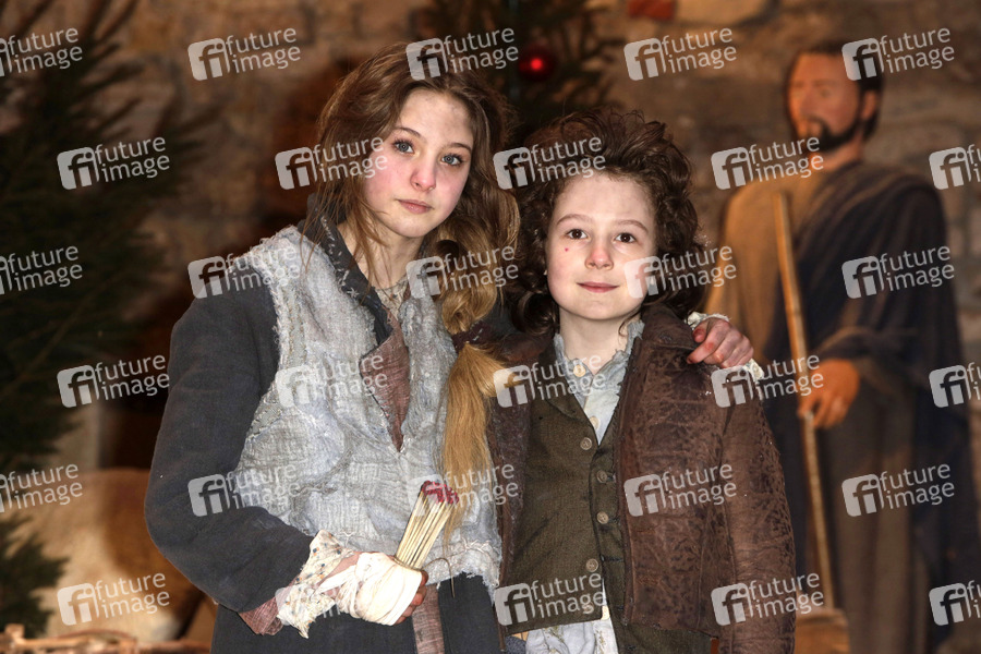 Lea Mueller und Joerg Hartmann beim Fototermin am Set des Fernsehfilms 'Das Mädchen mit den Schwefelhölzern' aus der ARD-Märchenreihe 'Sechs auf einen Streich' in der Zitadelle Spandau. Berlin, 18.03.2013