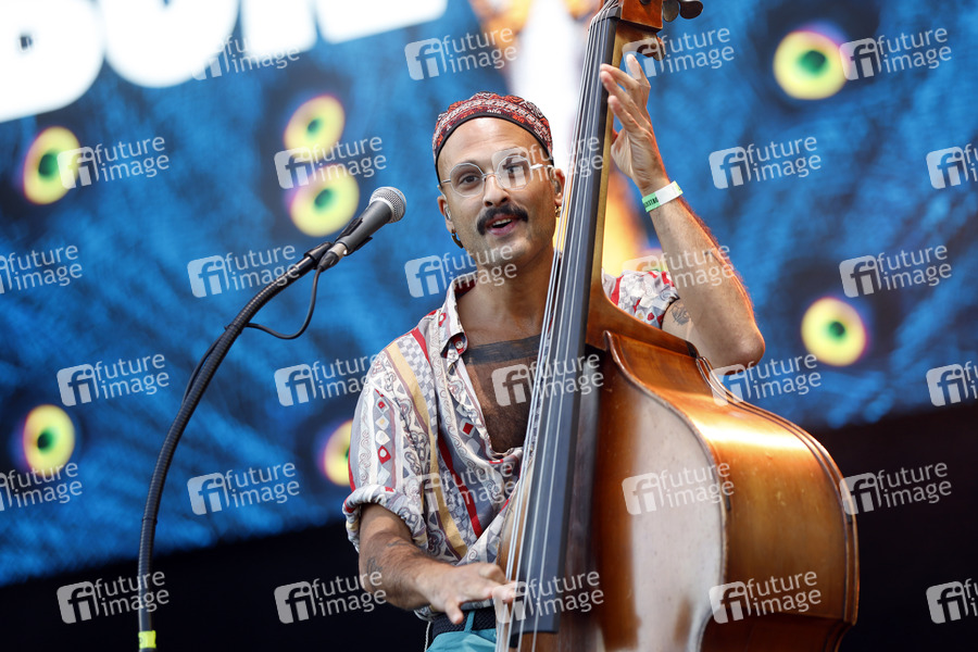 Ahmed Eid von der Band Bukahara live im Kulturgarten in der Bonner Rheinaue. Das Bonn Live Kulturgarten Open Air Festival 2020 ist Europas erstes Open Air Musik Festival unter Corona-Auflagen wegen der Covid-19 Pandemie. Bonn, 21.07.2020