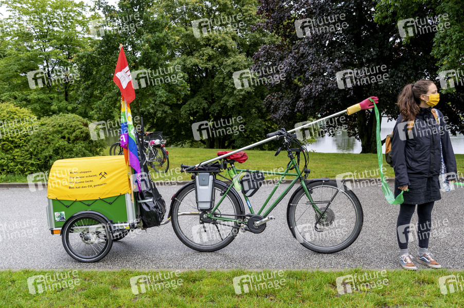 Menschenkette von rund 220 Aktivisten von Fridays for Future gegen das Kohleausstiegsgesetz. Hamburg, 10.07.2020