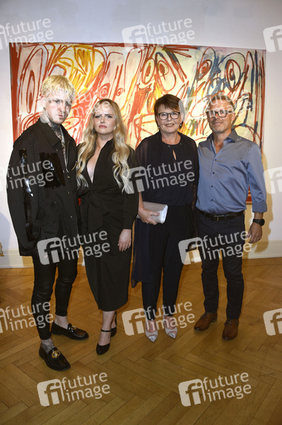 Alexander Höller, Svenja Reichert, Christiane Reichert und Thomas Reichert bei der Eröffnung der Alexander Höller Ausstellung 'F*CK THEM' in der Galerie Schmalfuss. Berlin, 19.08.2021
