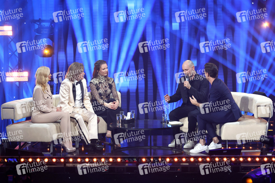Ramona Drews, Jürgen Drews, Joelina Drews, Oli.P und Florian Silbereisen bei der Aufzeichnung der TV Show 'Zum allerletzten Mal: Der grosse Schlagerabschied!' im Studio 3 der Media City. Leipzig, 22.10.2022