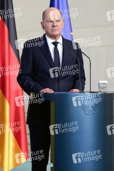 Politik, Staatsbesuch, Staatsvisite, Gespräch, bilaterale Gespräche, Treffen, Diplomatie, Staatsgast Kanzleramt, Ehrenhof, Pressekonferenz, Pressestatement, Unterstützung, Krieg, Politiker, Bundeskanzler, SPD