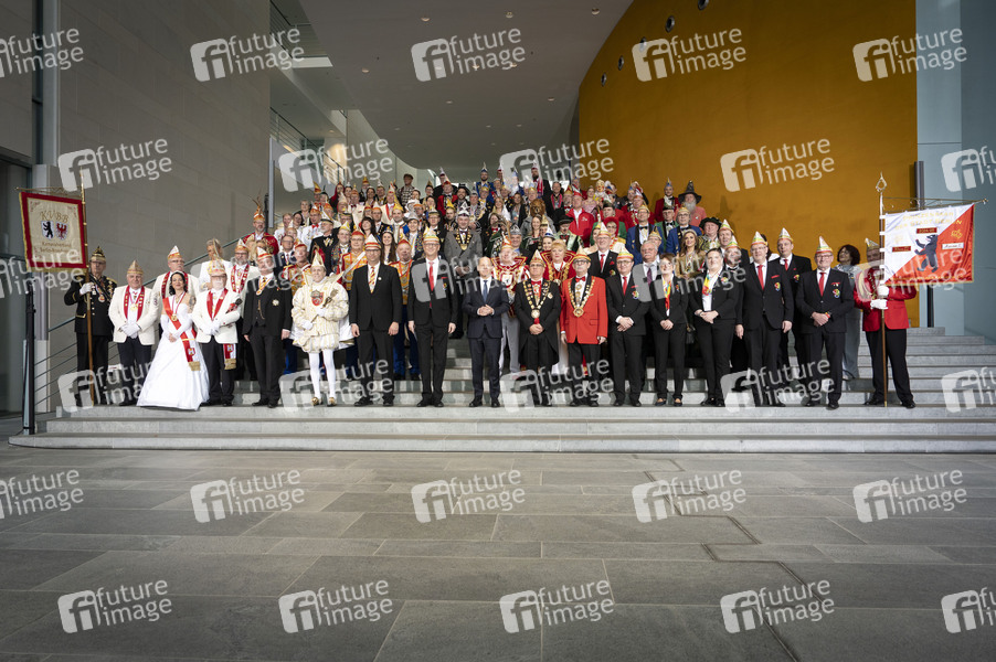 Olaf Scholz und Klaus-Ludwig Fess beim Empfang von Karnevalisten im Bundeskanzleramt. Berlin, 05.02.2025