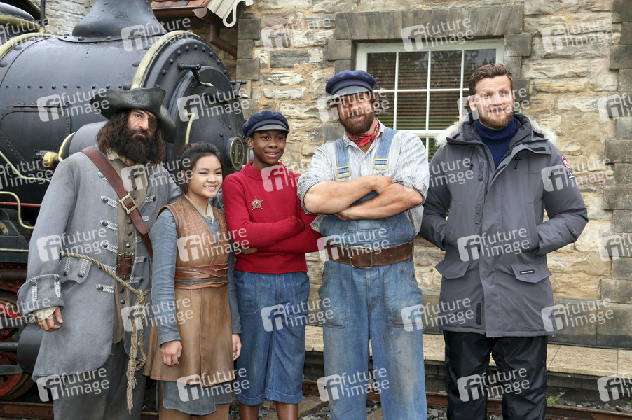 Rick Kavanian, Leighanne Esperanzate, Solomon Gordon, Henning Baum und Dennis Gansel beim Fototermin am Set des Kinofilms 'Jim Knopf und die Wilde 13' im Studio Babelsberg. Potsdam, 22.5.2019