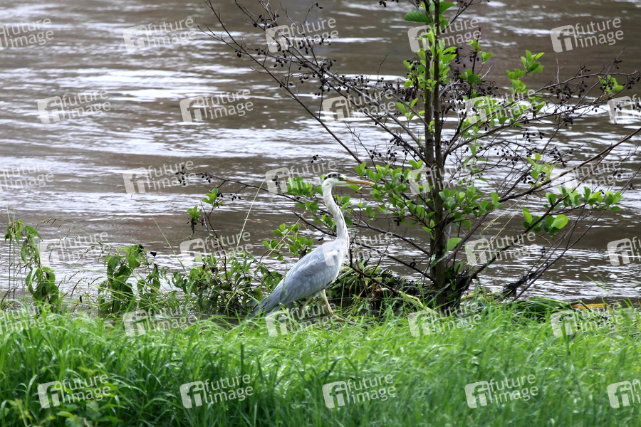 Hochwasser, Überschwemmungen, Regenfälle, Niederschlag, Dauerregen, Klima, Wetter, Vögel, Graureiher, Fischreiher, Reiher