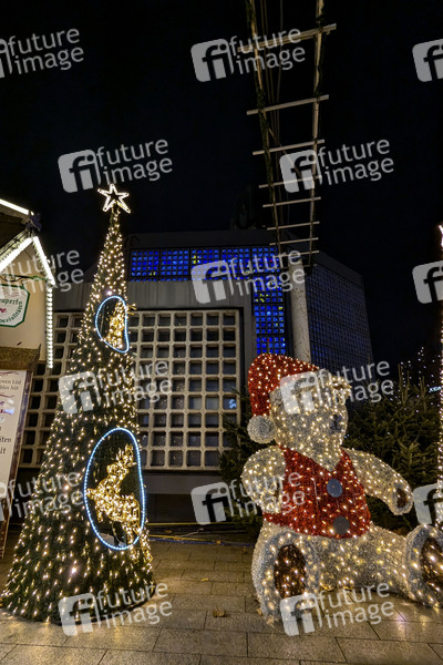 Beleuchteter Teddybär auf dem City-Weihnachtsmarkt an der Gedächtniskirche auf dem Breitscheidplatz. Berlin, 16.12.2024