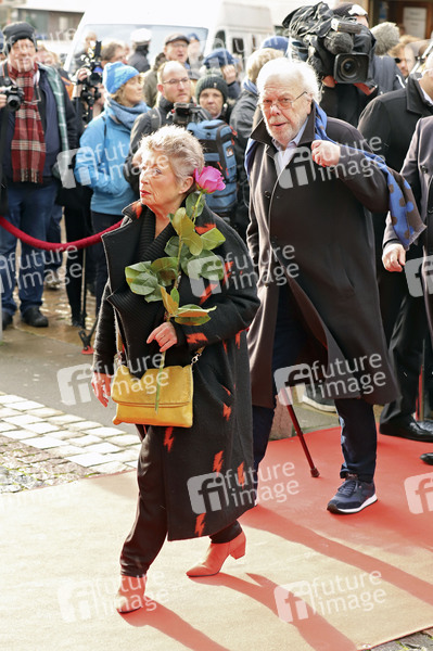 Brigitte Janner mit Ehemann Hajo Gies bei der Trauerfeier für Jan Fedder in der Hauptkirche St. Michaelis. Hamburg, 14.01.2020