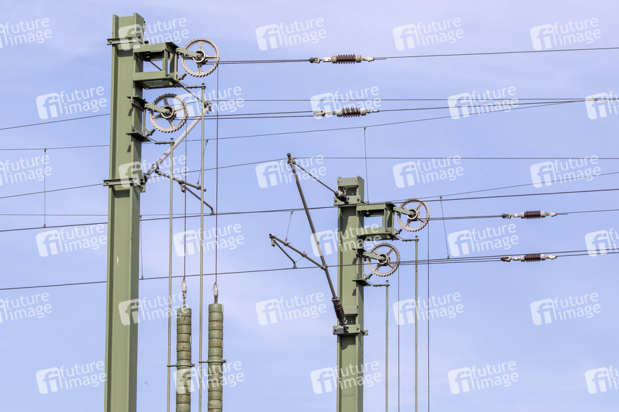Fahrleitung, Fahrdraht, Signale, Stromabnehmer, Stromkreis, elektrische Energie, 15000 Volt, Elektrischer Schlag, Elektrizität, Bahnstromnetz, Lichtbogen, Gleichstrom, 1400 Ampere, Stromstärke, Quertragwerk, Rillenfahrdraht, Stromschienenoberleitung, Strommaste, Unterwerk, Erdung, Kurzschluss, Blitzschutz, Korrosion, Fahrleitungssysteme, Hauptstrecke, Nebenstrecke, Verkehrssektor, Verkehrsbranche, Fahrstromversorgung, Herausforderungen, Deutsche Bahn, DB, Bahnindustrie, Eisenbahnen, Güterwagen, Transportvolumina, Güterzüge, Versorgungssicherheit, Rail, Cargo, Europäischen Wirtschaft, Deutsche Wirtschaft, Warentransport, Logistiklösungen, Logistik, Logistik-Center, Waggon, Strecken, Schiene, Dienstleistungen, Transferverbindung, Symbolfoto, Symbolbild
