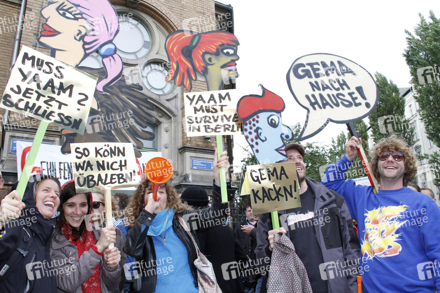 Demonstration gegen die Tarifreform der GEMA während des GEMA-Mitgliederfestes vor dem Frannz Club an der Schönhauser Allee, Berlin