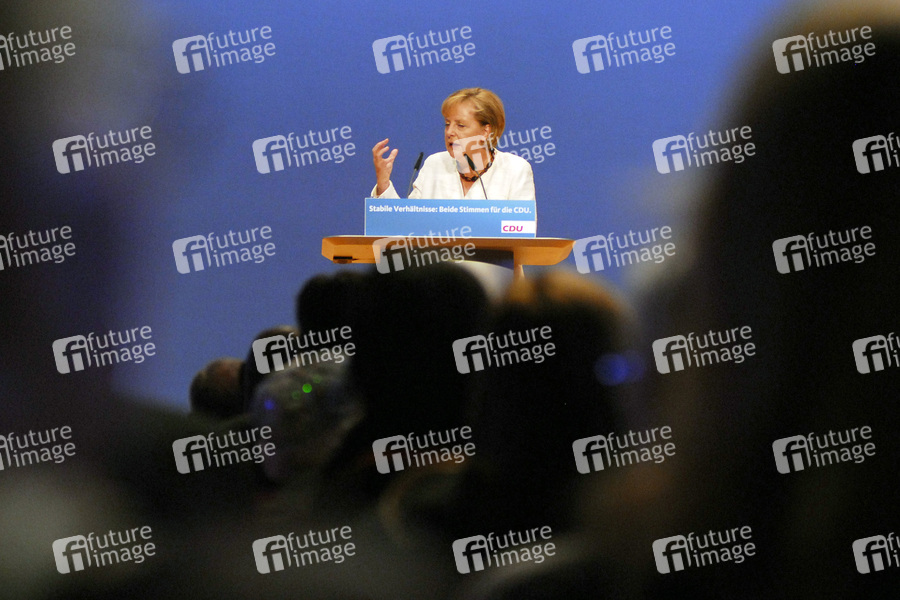 Wahl zum 17. Deutschen Bundestag, Politik, Rede, Demokratie, Wahlkampf, Partei, Wahlkampfveranstaltung, Parteienwerbung, Kampagne, Wahlen, Wahlkampagne, Wahlkampftour, Wahlkampfauftritt, Bundestagswahlkampf, Bundestagswahl, Bundestagswahlen, Kandidatin, Politikerin, Bundeskanzlerin