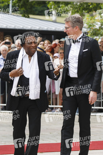 Roberto Blanco und Markus Blume bei der Eröffnung der 112. Richard-Wagner-Festspiele 2024 mit der Neuinszenierung von 'Tristan und Isolde' im Bayreuther Festspielhaus. Bayreuth, 25.07.2024