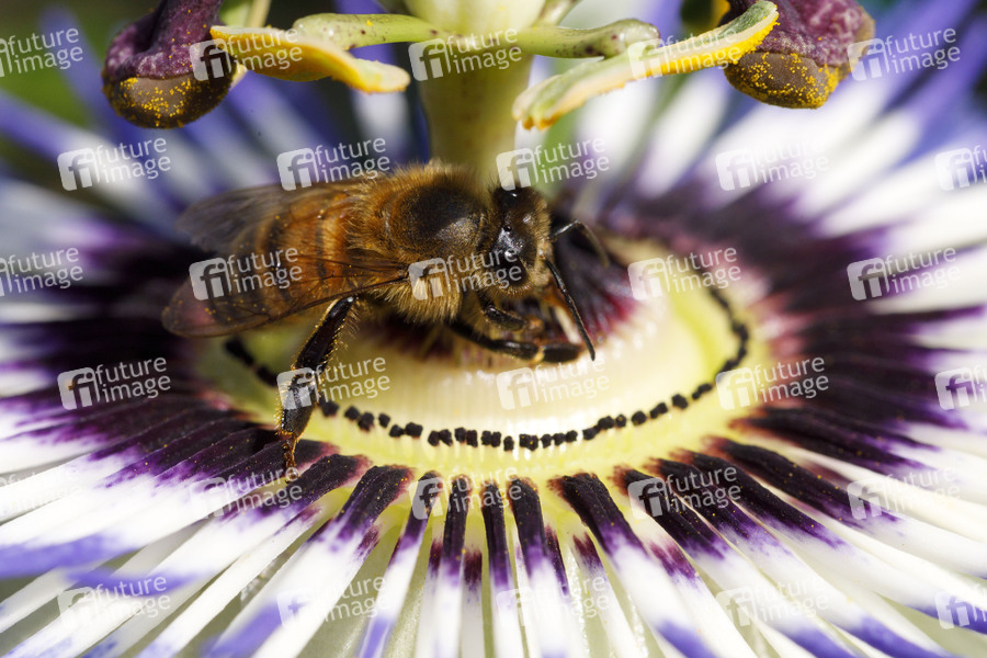 Biene, Bienen, Honig, Honigbiene, Apis, Apidae, Hautflügler, Honigbienen, Echte Bienen, Passionsblume, Mediterrane Kletterpflanze, Blüte, Blüten, Blütenkelch, Bestäubung, Insekt, Insekten, Natur, Naturschutz, Tiere im Garten, staatenbildende Arten, Pollen, Pollensammeln, Glyphosat, Glyphosatverbot, Glyphosat-Verbot, Neonicotinoide, Glyphosat-Zulassung, Pflanzenschutzanwendungs-Verordnung, Pflanzenschutzmittel, Unkrautvernichtungsmittel, Symbolbild, Symbolfoto