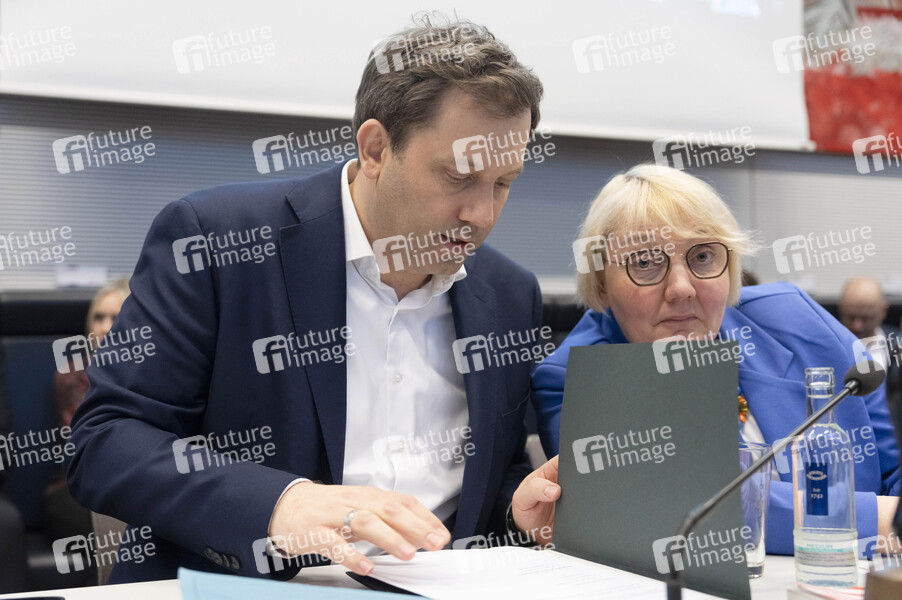 Lars Klingbeil und Katja Mast bei der Fraktionssitzung der SPD-Bundestagsfraktion im Reichstagsgebäude. Berlin, 17.03.2025