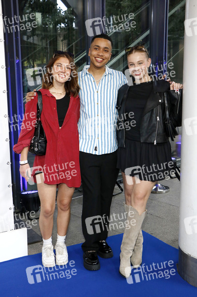 Frida Lucia Schenderlein, Jerome Weinert und Paula Senfkorn beim 20 Jahre Blue Man Group Event im Stage Bluemax Theater. Berlin, 16.05.2024