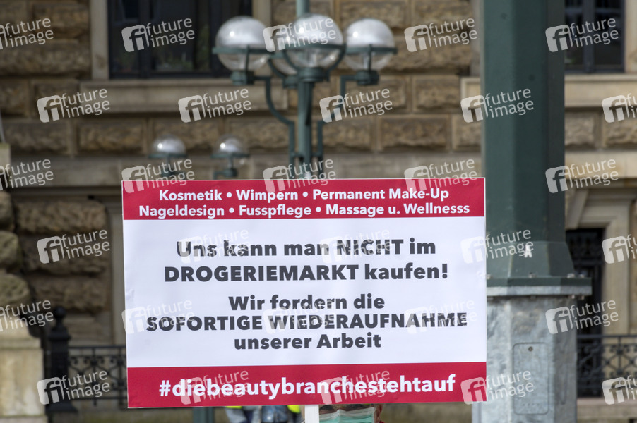 Demonstration der Beautybranche und Tattoostudios vor dem Rathaus für die Erlaubnis der Wiedereröffnung ihrer Geschäfte. Hamburg, 12.05.2020