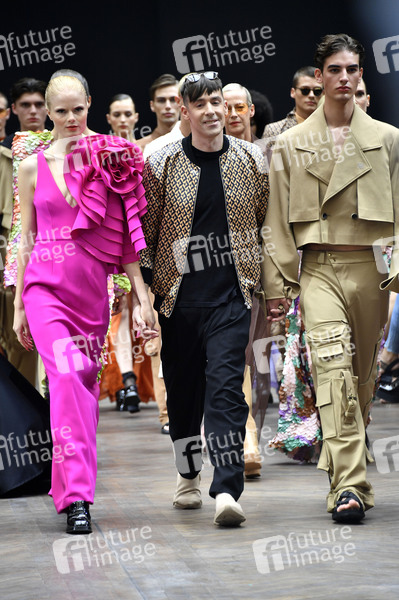 Kilian Kerner mit Models bei der Kilian Kerner Fashion Show im Rahmen der MBFW auf der Berlin Fashion Week Spring/Summer 2023 im Hotel Telegraphenamt. Berlin, 06.09.2022