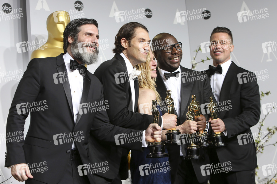 Anthony Katagas, Jeremy Kleiner, Dede Gardner, Steve McQueen, Brad Pitt mit dem Oscar für den besten Film '12 Years a Slave' bei der Oscar Verleihung 2014 / 86th Academy Awards Preisverleihung im Dolby Theatre, Hollywood. Los Angeles, 02.03.2014