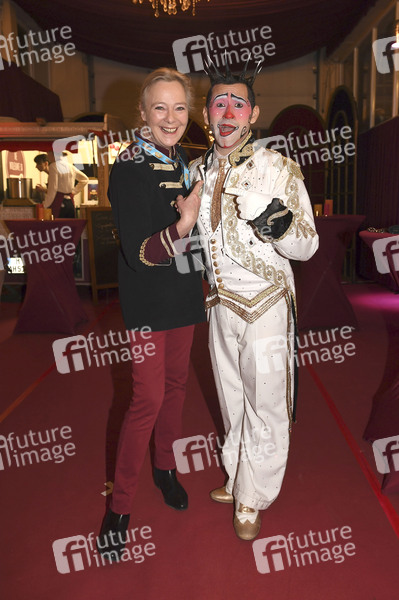 Uschi zu Hohenlohe-Oehringen mit Clown bei der Premiere vom 2. Winterprogramm 2019/2020 des Circus Krone im Kronebau. München, 01.02.2020