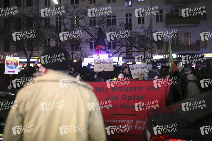 Demonstration, Polizei, Antifa, Hanau, Rechtsextremismus, Hermannplatz, Berlin, Neukölln, Sonnenallee, Demonstranten. Protest, Demo, Gedenkveranstaltung, Politik