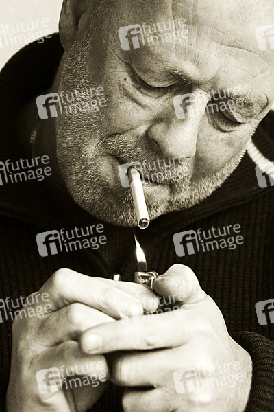 alter Mann, unrasiert, Stoppelbart, Zigarette