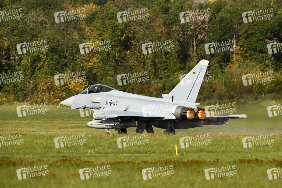 Eurofighter beim Start während des Besuchs der Bundesverteidigungsministerin Annegret Kramp-Karrenbauer beim Taktischen Luftwaffengeschwader 31 'Boelcke'. Nörvenich, 27.09.2019