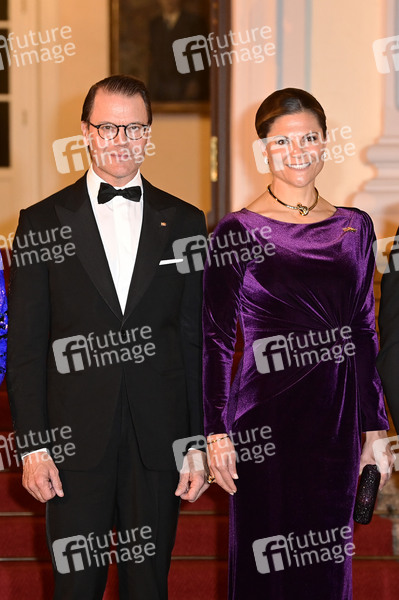 Prinz Daniel von Schweden und Kronprinzessin Victoria von Schweden bei der Ankunft zum Abendessen anlässlich des 25. Jubiläums der Nordischen Botschaften im Schloss Bellevue. Berlin, 21.10.2024