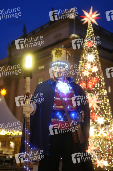 Walking Act auf dem Weihnachtsmarkt WeihnachtsZauber Gendarmenmarkt 2024 auf dem Bebelplatz an der Staatsoper. Berlin, 27.11.2024