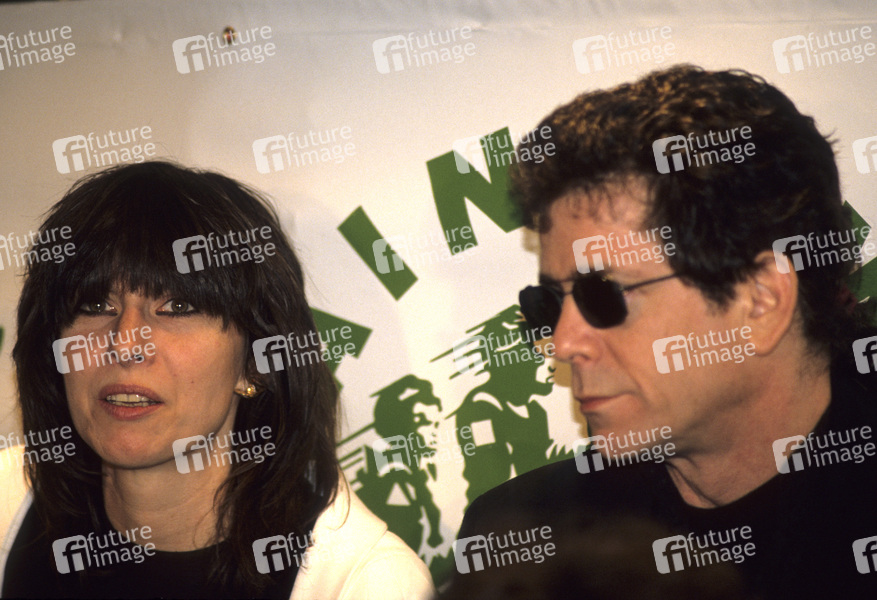 Chrissy Hynde und Lou Reed bei einer Pressekonferenz der Greenpeace Rainforest Foundation im Hard Rock Cafe. London, 10.05.1989