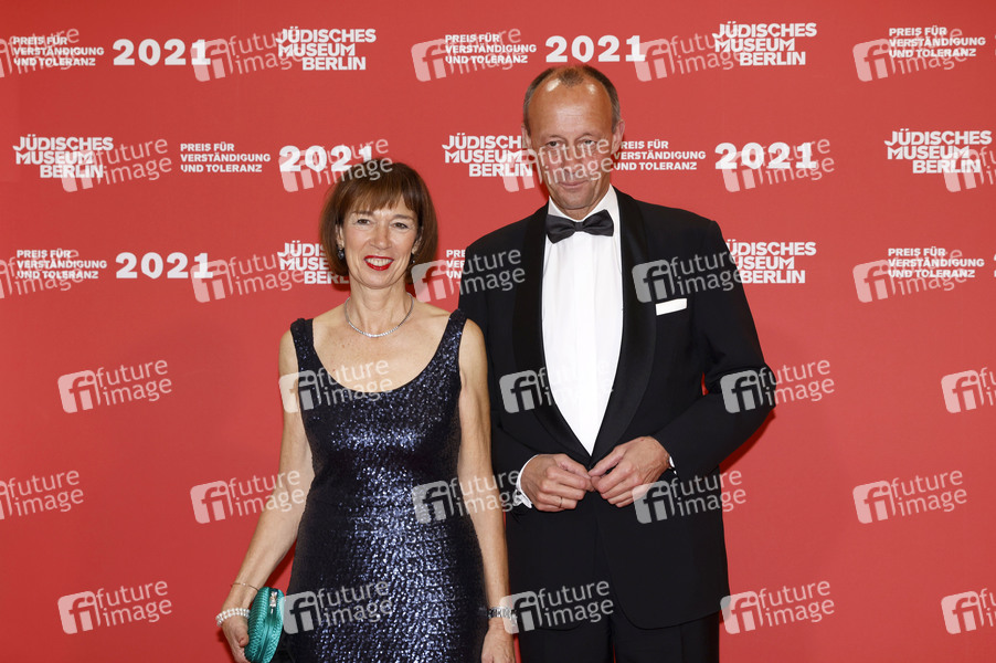 Friedrich Merz mit Ehefrau Charlotte Merz bei der Verleihung des 'Preises für Verständigung und Toleranz' im Glashof des Jüdischen Museums. Berlin, 13.11.2021