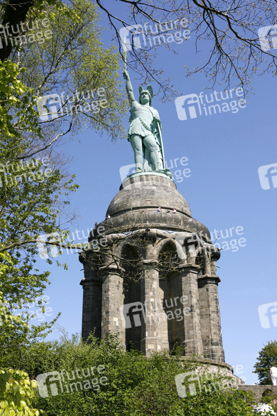 soll an den Cheruskerfürsten Arminius (Lateinisch, in deutsch: Hermann) erinnern, Gesanthöhe 53.46 m, Sandsteinunterbau 26.89m, Figur 26.57 m, besteht aus einer Eisenrohrkonstruktion mit Oberfläche aus Kupferplatten, Erbauer Ernst von Bandel, Baubeginn 1838, nach der Revolution von 1848 ruhte der Bau bis 1863, festliche Einweihung 1875