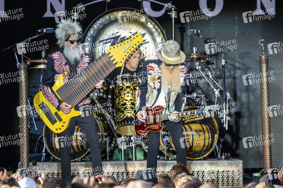 Elwood Francis, Frank Beard und Billy Gibbons von ZZ Top live beim Sommerfestival 2024 unter dem Motto 'Beats, Bands und Beach' in der Autostadt. Wolfsburg, 13.07.2024