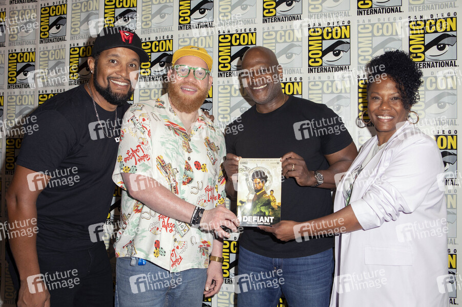 Ray-Anthony Height, Marvin Jones, Rob Edwards und Felicia Singleton beim Photocall zur Graphic Novel 'Defiant: The Robert Smalls Story' auf der San Diego Comic-Con International 2024 im Hilton Bayfront Hotel. San Diego, 26.07.2024