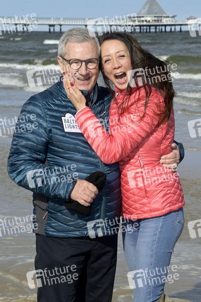 Jan Hofer mit Ehefrau Phong Lan Hofer beim Baltic Lights 2023 Charity-Hunderennen zu Gunsten der Welthungerhilfe zwischen der Seebrücke Ahlbeck und der Seebrücke Heringsdorf. Heringsdorf, 04.03.2023