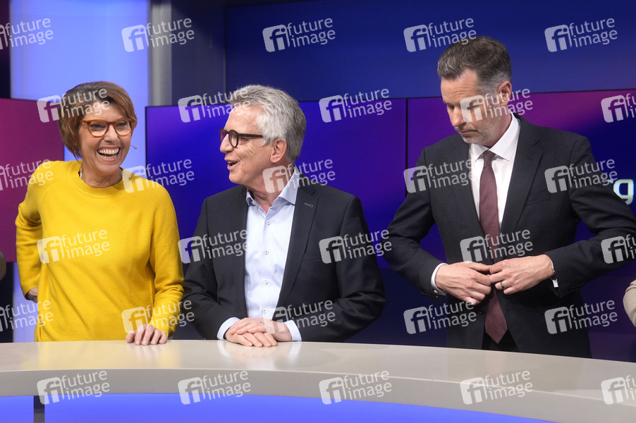 Bettina Böttinger, Thomas de Maiziere und Christian Dürr in der ARD-Talkshow 'maischberger' im Studio Berlin Adlershof. Berlin, 07.05.2024