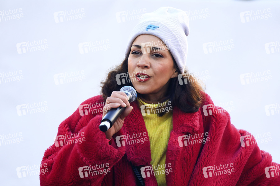 Nadja Benaissa bei der Kundgebung unter dem Motto 'Mutig. Menschlich. Miteinander. - Hand in Hand für unsere Demokratie' auf dem Bebelplatz. Berlin, 16.02.2025