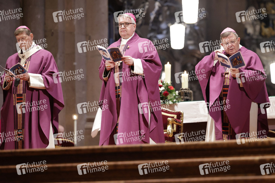Stephan Burger, Peter Kohlgraf und Wilmar Santin bei der Bischofsweihe von Pater Joshy Pottackal O.Carm. im Hohen Dom zu Mainz. Mainz, 16.03.2026